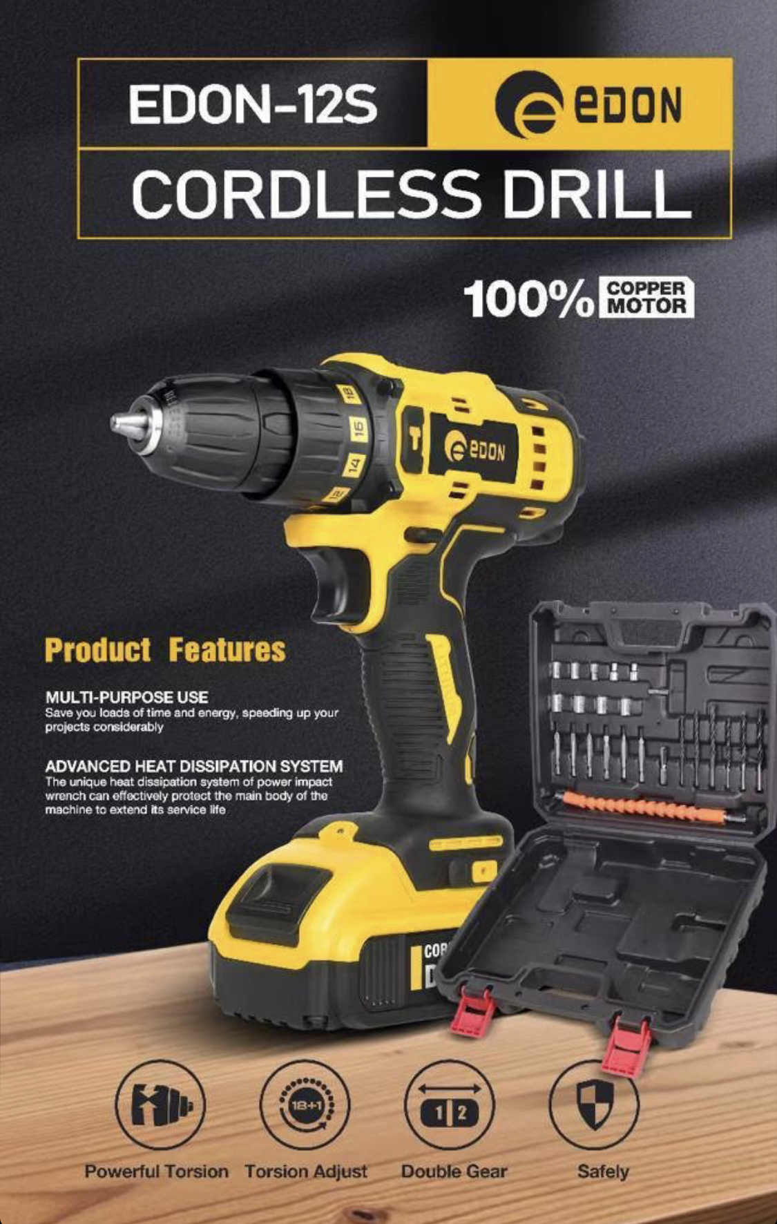- دریل شارژی ادون مدل ED-12 مجموعه 38 عددی